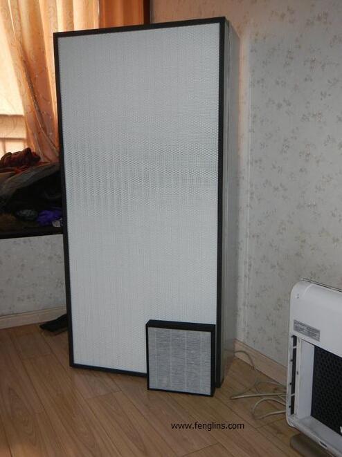 前后兩部分組成,后面是風(fēng)機(jī)組件,前面是一塊大號(hào)兒高效濾清材料。出廠時(shí),廠家就已經(jīng)將兩部分固定好了。過(guò)濾器,長(zhǎng)一米二寬六十左右,厚度七十毫米厚,差不多是家用的3倍大,單獨(dú)買(mǎi)300左右,是其他家用凈化器濾材價(jià)格的5/1,和家用的比尺寸上是占了上風(fēng),過(guò)濾效果也相當(dāng)理想,嘿嘿……網(wǎng)上說(shuō)還需要用膠帶密封,其實(shí)里面都有密封橡膠圈。做不做看自己吧。